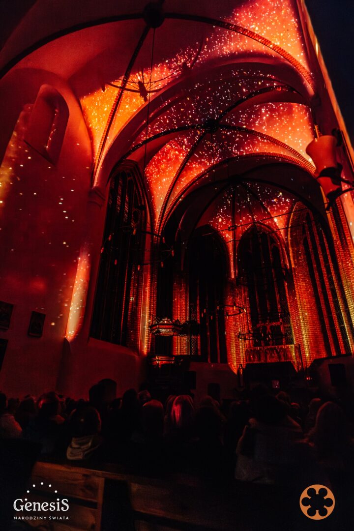 Mapping „GENESIS” wewnątrz kościoła pocysterskiego, na sklepieniach gotyckich, oknach i ścianach był dla nas projektem ambitnym i skomplikowanym realizacyjnie. Tym większa duma, że wszystko się udało i nasze publiczność to doceniła. Marzenie się spełniło, w Kołbaczu – gdzie to, co nasze, lokalne spotyka się z tym, co uniwersalne.